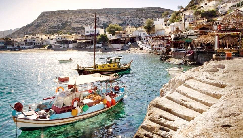 Tras la visita cruzamos las altas montañas del centro de la isla, viajamos a la zona sur, junto al mar de Libia conocemos Agia Galini, pintoresco pueblo de laberínticas callejuelas, puerto pesquero y populares tabernas. Tiempo para almorzar y si lo desea, bañarse en el mar.