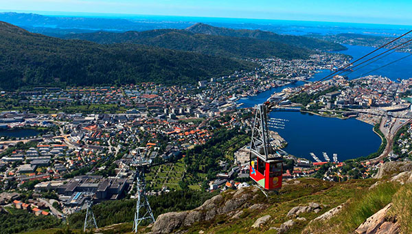 Incluimos la subida en funicular a Mount Floyen, desde donde existen espectaculares vistas sobre la ciudad y el fiordo de Bergen.