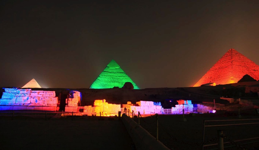 Por la noche visita del espectáculo Luz y Sonido en las Pirámides de Giza. Información importante : El espectáculo de Luz y Sonido en las pirámides se suspenderá hasta el 2024 por trabajos de mantenimiento.