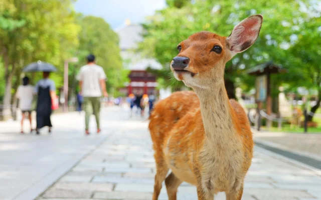 A continuación, pasaremos por el Parque de Nara, conocido por sus ciervos en semi-libertad, considerados mensajeros sagrados. Tendremos la oportunidad de interactuar con estas simpáticas criaturas, una experiencia entrañable y única en Japón.