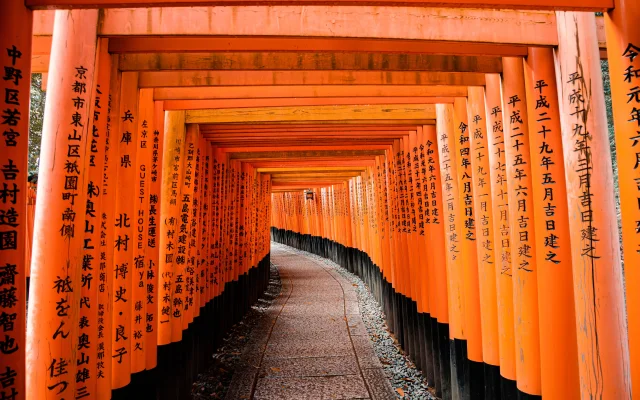Posteriormente, partiremos hacia Kioto. En el camino haremos una parada especial en el emblemático Santuario de Fuchimi Inari, conocido por sus miles de puerta torii de un intenso color rojo, forma un sendero único y mágico en la ladera del monte Inari. Este lugar, uno de los más fotografiados de Japón, nos permitirá experimentar de cerca el misticismo sinoísta y la simbología de los torii, que representan la entrada al mundo espiritual.